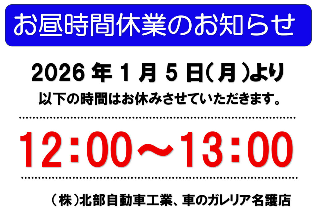 マツダオートザム北部【年末年始】休業日のお知らせ